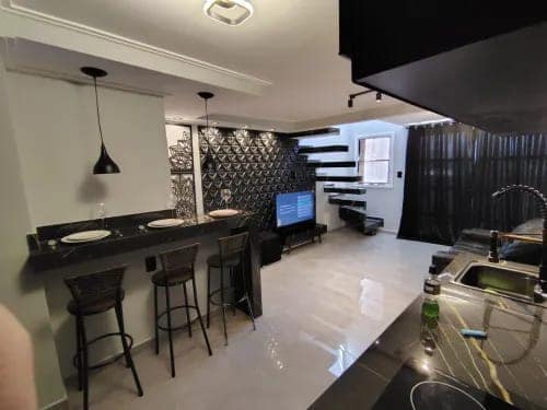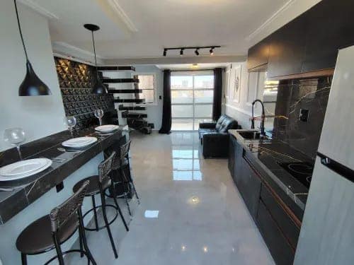 Prédio novo, rua conhecida, vários comércios na região, elevador, vaga coberta e demarcada, construção diferenciada. Apto com acabamentos de ótima qualidade, porcelanato, vai completo, fogão indução, tv, sofá, geladeira inox, cozinha planejada, sofá couro, portas de correr, pé direito duplo na escada, cortinas blackout, etc.