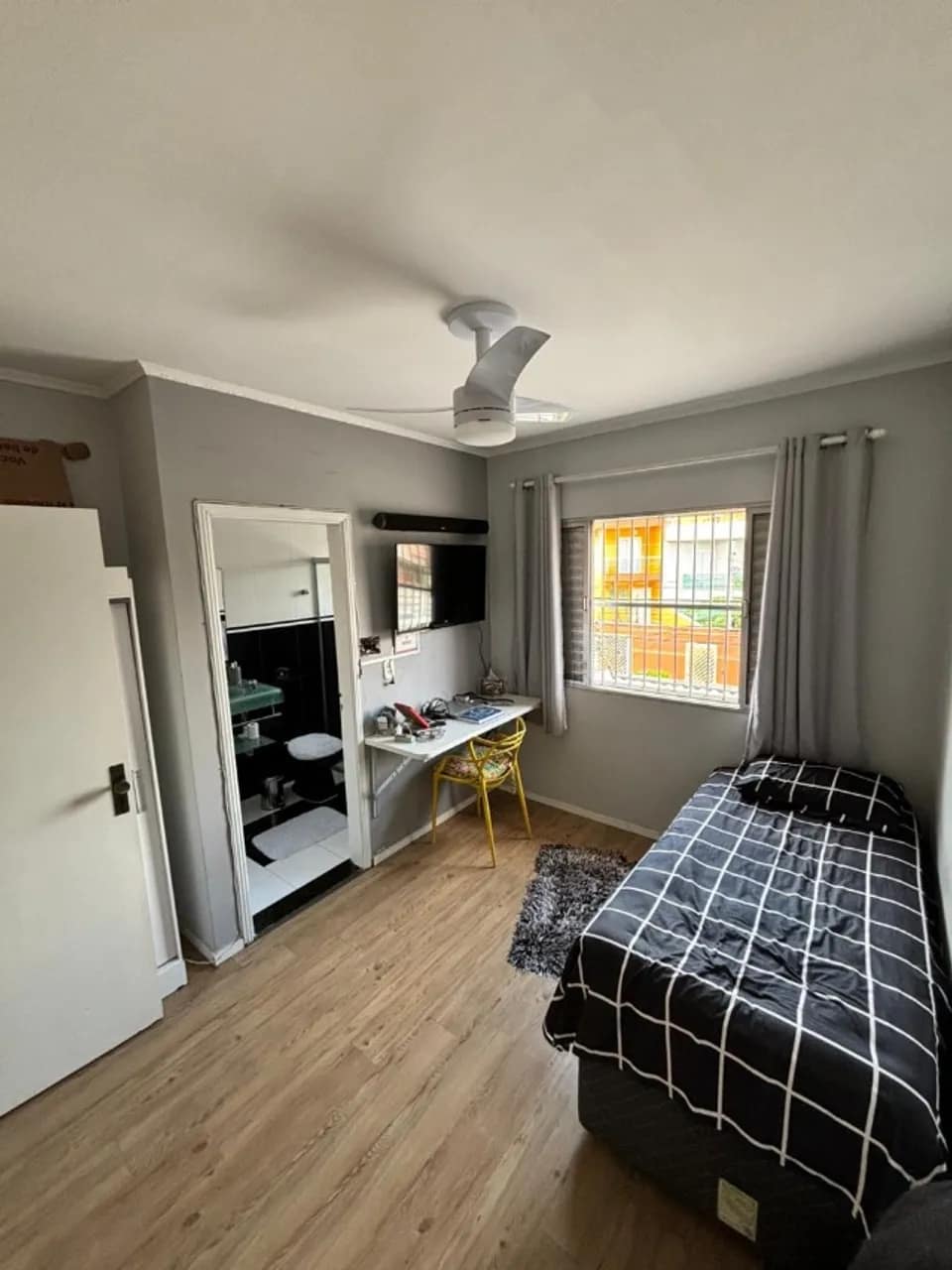Espaço home em edícula com escritório , internet , banheiro , 2 mesas com cadeiras e porta de vidro