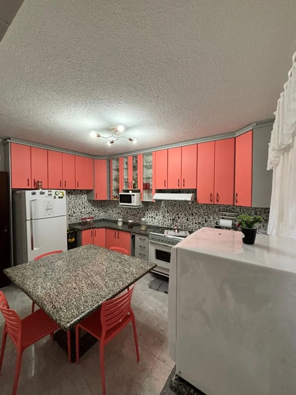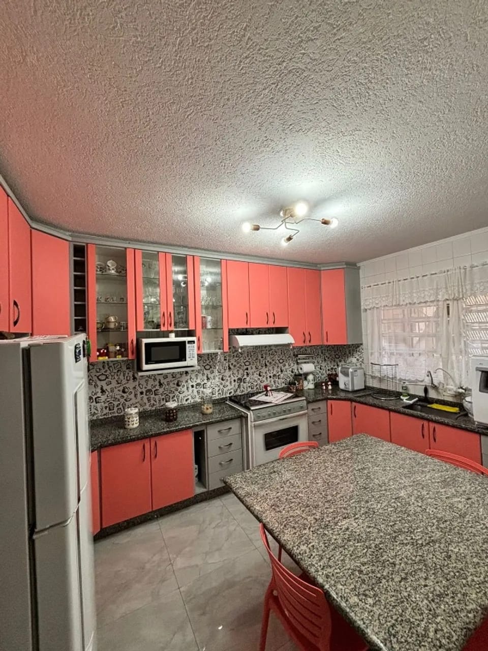 Cozinha toda planejada com fogão embutido 6 bocas , mesa granito