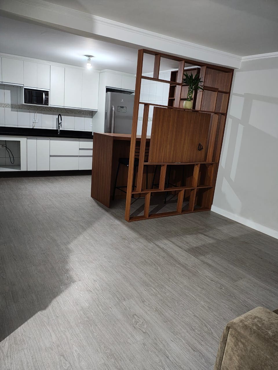 Ampla Casa recentemente reformada, piso vinílico, 03 dormitórios, rica em armários, sala, cozinha planejada e sala de jantar conceito aberto, 01 suíte com ar condicionado, 01 banheiro, 01 lavabo, garagem para 02 veículos, lavanderia com armários, garagem possui um banheiro de serviço e depósito.